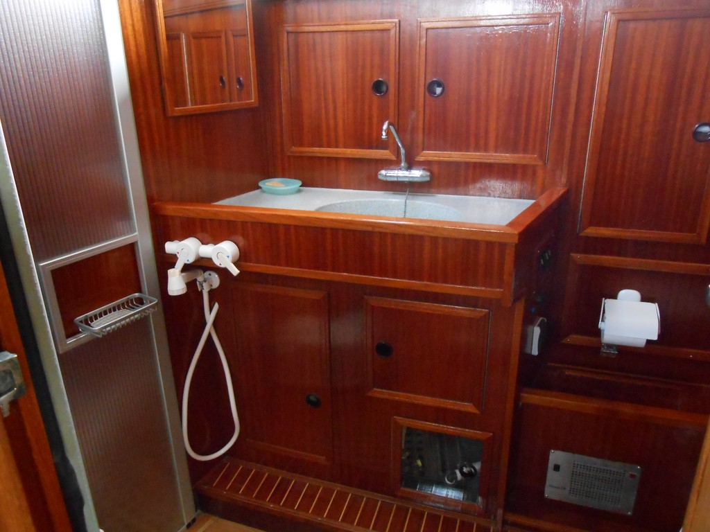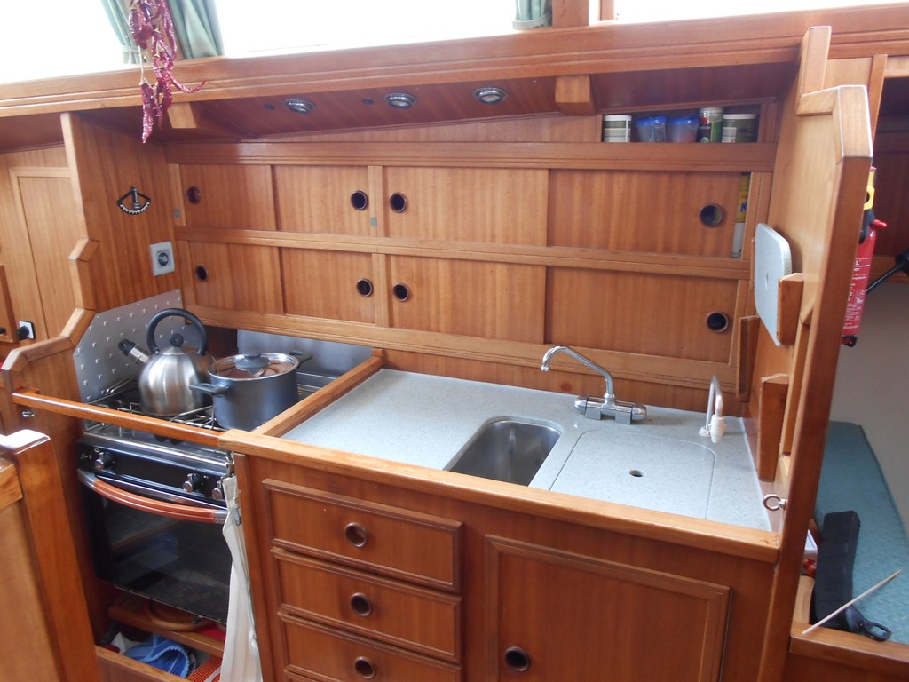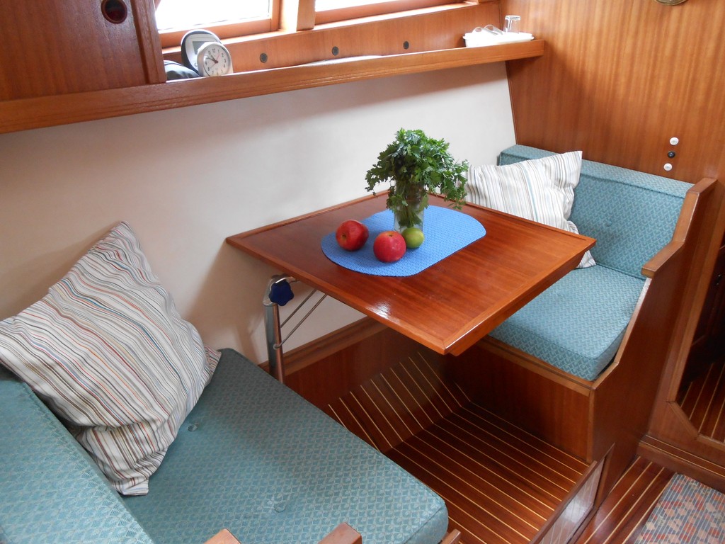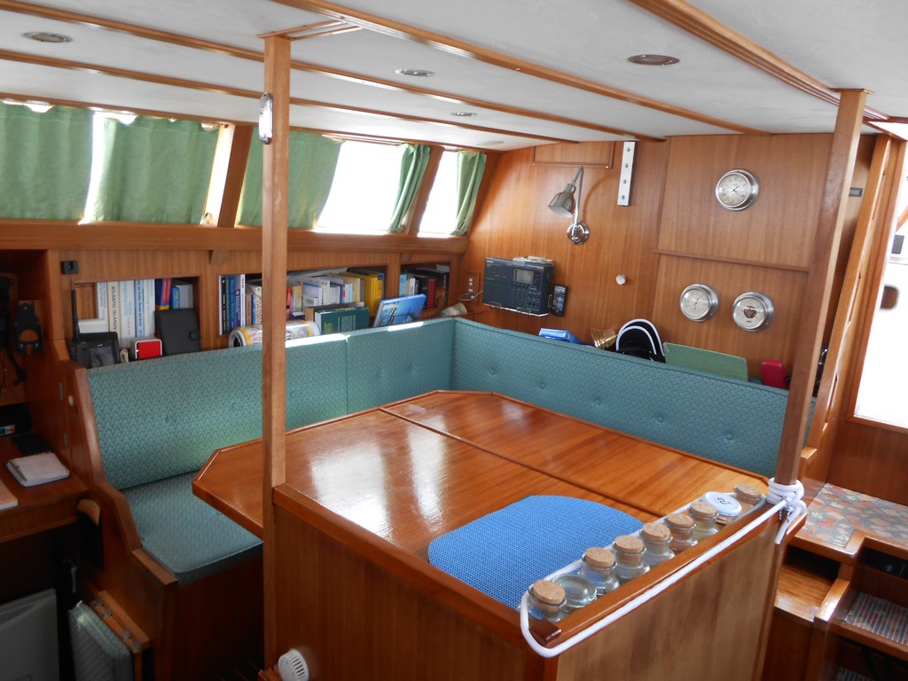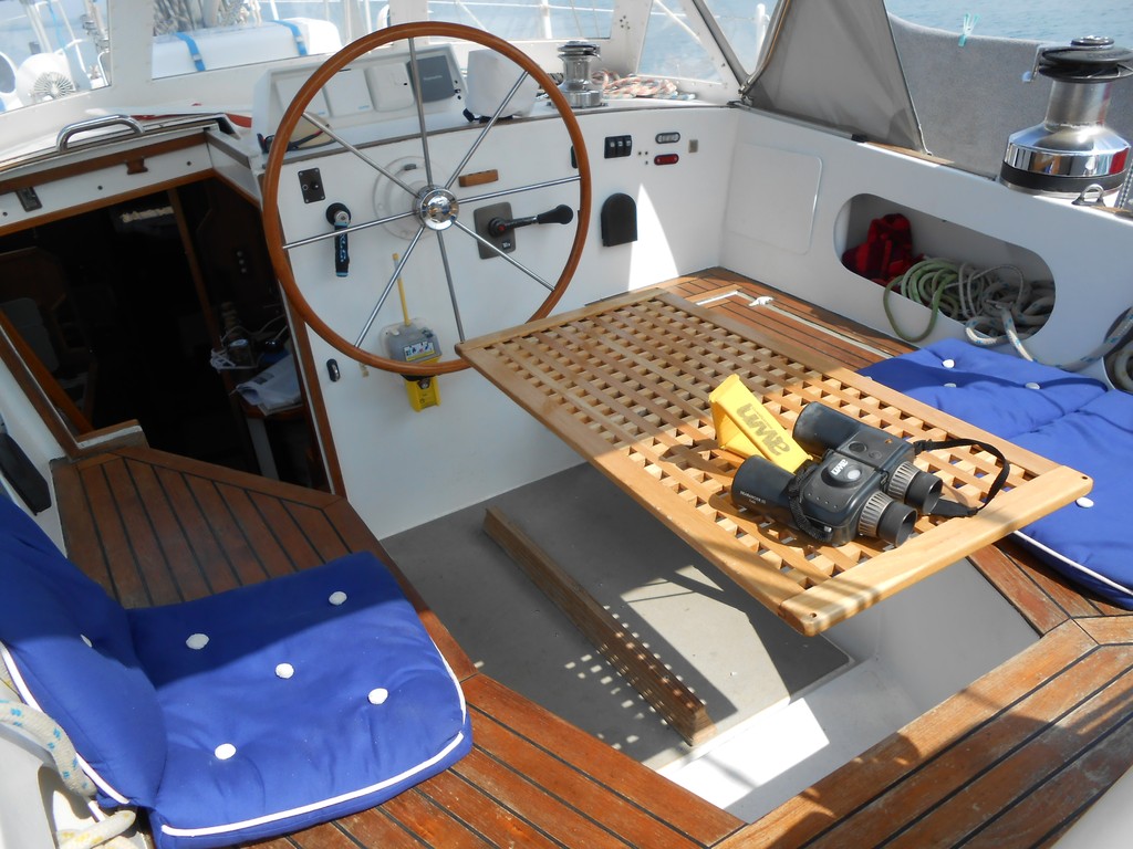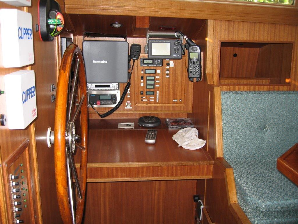 Sie ist ausgerüstet mit GPS, AIS, Radar, Epirb, Rettungsinsel, div. weiteren Rettungsmitteln, Kühlschrank für die warmen Tage, Heizung für die kalten Tage,... sprich allem was man braucht.